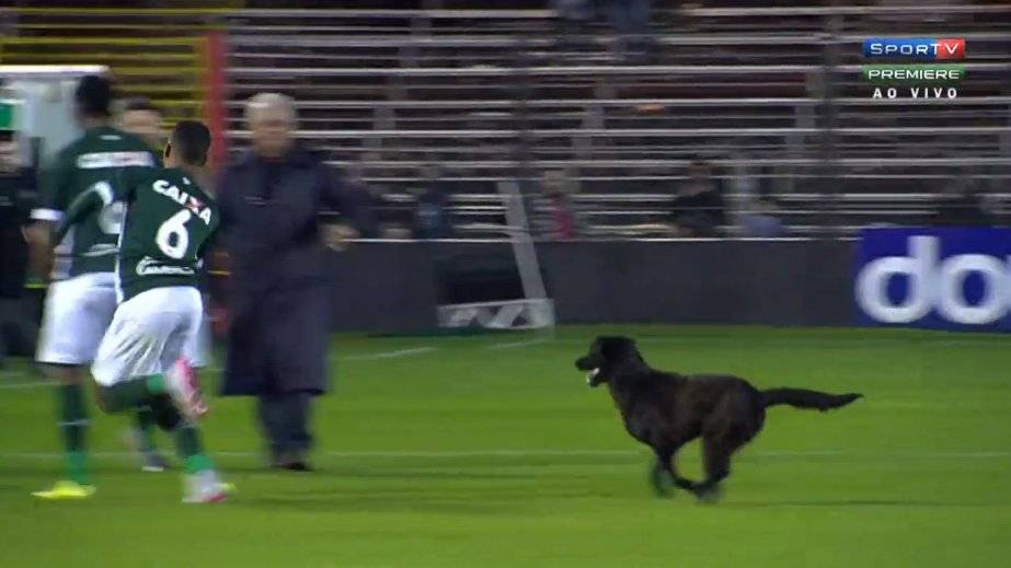 Um cachorro foi a estrela de Brasil de Pelotas e Goiás, disputado na noite desta sexta-feira (2), pela Série B. Em altíssima velocidade, o animal invadiu o gramado em cobrança de falta do Esmeraldino e por pouco não participou do gol da equipe.