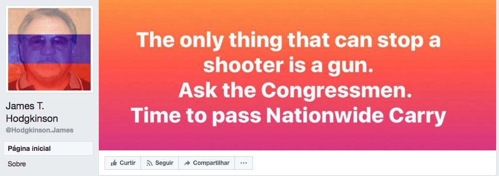 Não sei a resposta. Só sei que o Facebook – ou Foicebook, para alguns – possui critérios muito estranhos. Sim, porque se a página oficial foi apagada, consta que outras, claramente falsas, criadas hoje mesmo, continuam lá, para quem quiser ver. Uma delas associa de forma cafajeste o atirador com a NRA, defensora do direito individual de possuir e portar armas: