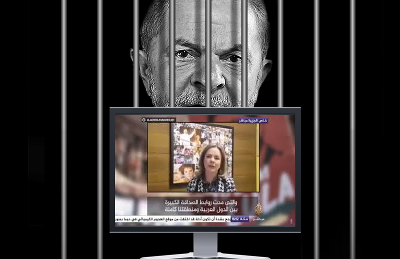 Repercutiu nesta quarta-feira (18) um vídeo enviado à grande emissora de televisão do mundo árabe, a Al Jazeera, em que a senadora denuncia a prisão de Lula como uma “prisão política”, mais um desdobramento do “golpe de Estado” que depôs a “inocente presidenta” (sic) Dilma Rousseff, além de uma ameaça aos “direitos humanos”, e convida “a todos e a todas a se juntarem conosco nessa luta”. Frisando a “amizade de Lula com o mundo árabe”, Gleisi explicitamente quer a ajuda das forças sociais da região para enfrentar a “injustiça” cometida por Sérgio Moro, pelos procuradores da Lava Jato, o TRF-4 e até pelo STF. Garantiu que a Rede Globo está pressionando o Poder Judiciário apenas para manter Lula preso e favorecer um projeto de entrega do petróleo ao estrangeiro e uma política externa submetida ao Departamento de Estado americano (!!).