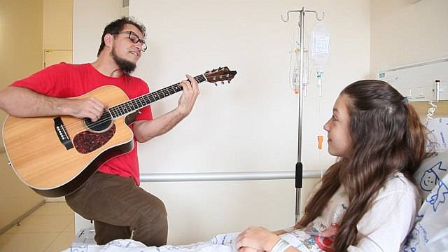 Atendendo a pedidos da garota internada no hospital, feitos pela Gazeta do Povo e nas redes sociais, músico canta, encanta e tira sorrisos de Giovana.