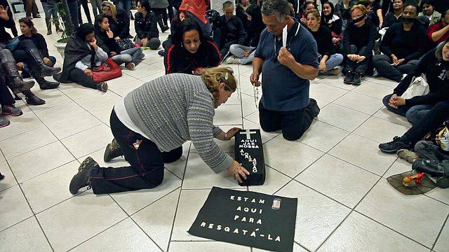 Professores municipais de Colombo, na RMC, fecharam parte da Estrada da Ribeira durante a tarde desta quinta-feira (26). Estimativa do sindicato da categoria é de que pelo menos mil pessoas tenham participado da caminhada.