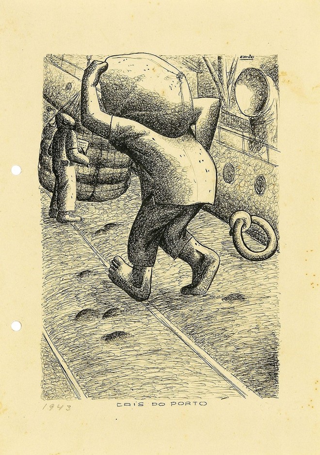 Às embarcações, também pintadas por nomes como o curitibano Estanislau Traple (1898-1958) e o polonês radicado em Curitiba Ricardo Koch (1900-1976), juntam-se obras que revelam o dia-a-dia movimentado dos estivadores e outros funcionários do local. Exemplo é a tela "Cais do Porto", de 1943, em que Ennio Marques Ferreira usa nanquim para dar vida a homens que carregam e descarregam as mercadorias dos navios.