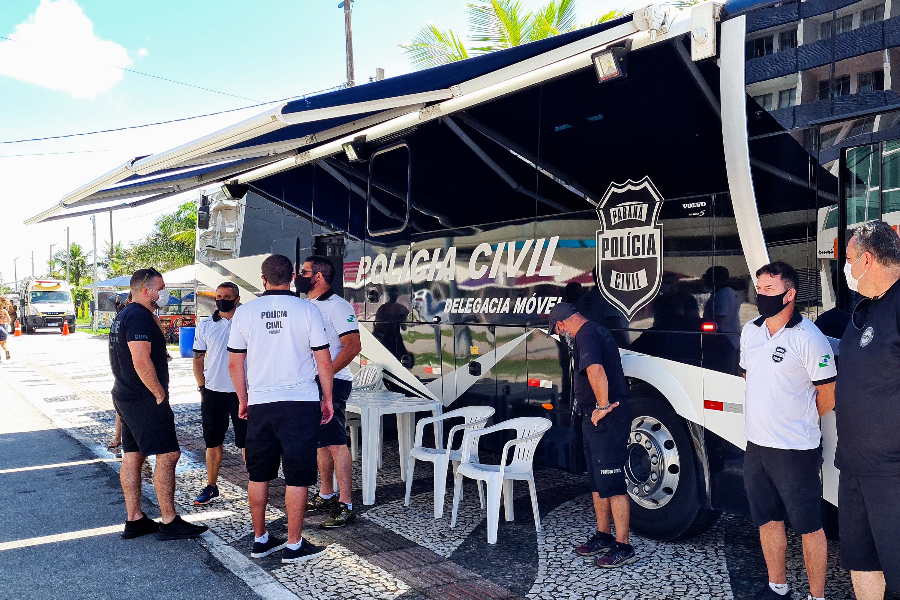 A Polícia Civil instalará de 31 de dezembro a 3 de janeiro de 2021 sua Delegacia Móvel na praia central de Guaratuba, no Litoral do estado. A unidade funcionará das 12h às 22 horas. Na Delegacia Móvel os veranistas poderão registrar boletins de ocorrência de qualquer natureza, além de tirar dúvidas sobre a atuação da Polícia Civil. Outro dos objetivos da ação é orientar e conscientizar pais e familiares a respeito de cuidados com crianças. Serão distribuídas pulseiras de identificação para crianças para evitar casos de desaparecimento e facilitar o encontro com os pais em situações em que crianças se perdem momentaneamente. Na semana seguinte, a Delegacia Móvel voltará para Matinhos. Estará na Praia Brava, em Caiobá, de sexta (8) até domingo (10), sempre com atendimento das 12h às 22 horas.
