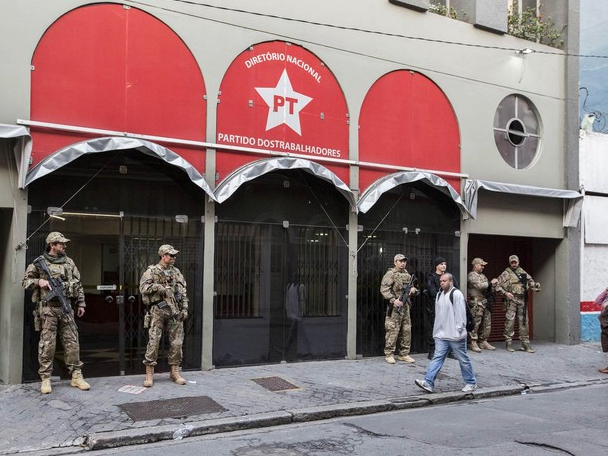 - Diriam que a foto estaria representando fortes evidências de um golpe, pois, como a imagem estaria demonstrando, a Polícia Federal perseguia e prendia todos os militantes de esquerda, acabando com o partido.