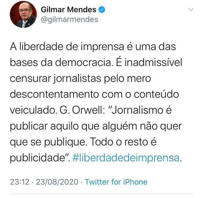 Só não pode criticar muito os ministros do próprio Supremo, pelo visto. Flavio Gordon tocou na ferida: