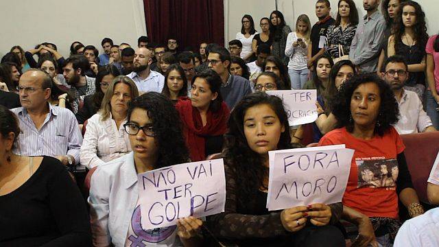 Professores de faculdade de Direito de Curitiba, promotores, defensores públicos e ex-procuradores se reuniram em ato em defesa do Estado Democrático de Direito.