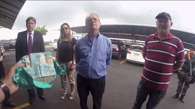 Imagens relevam momento em que promotor do Ministério Público do Distrito Federal comunica Abib Miguel e Edivan Bataglin sobre o mandado de prisão, no estacionamento do aeroporto. Bibinho admite que na mochila apreendida com ele estão R$ 70 mil em dinheiro.
