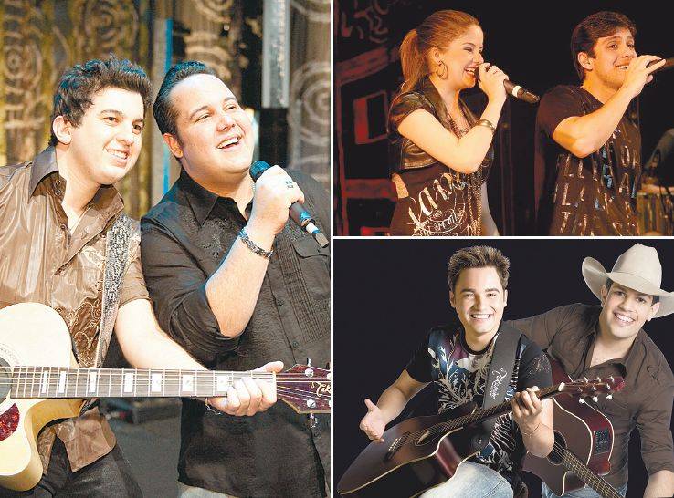 Em sentido horário: Dupla Jeann & Júlio se apresenta na Arena Curaçao,em Guaratuba, no dia 1º de janeiro… assim como Maria Cecília & Rodolfo, que também soltam a voz … e Fernando & Sorocaba, atrações do dia 8