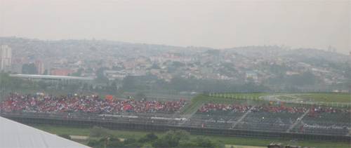 Abaixo, os primeiros cliques (toscos) do dia. A arquibancada da subida da reta dos boxes, o fim da reta oposta e a chegada dos mecânicos. Tudo clicado da escada da sala de imprensa.
