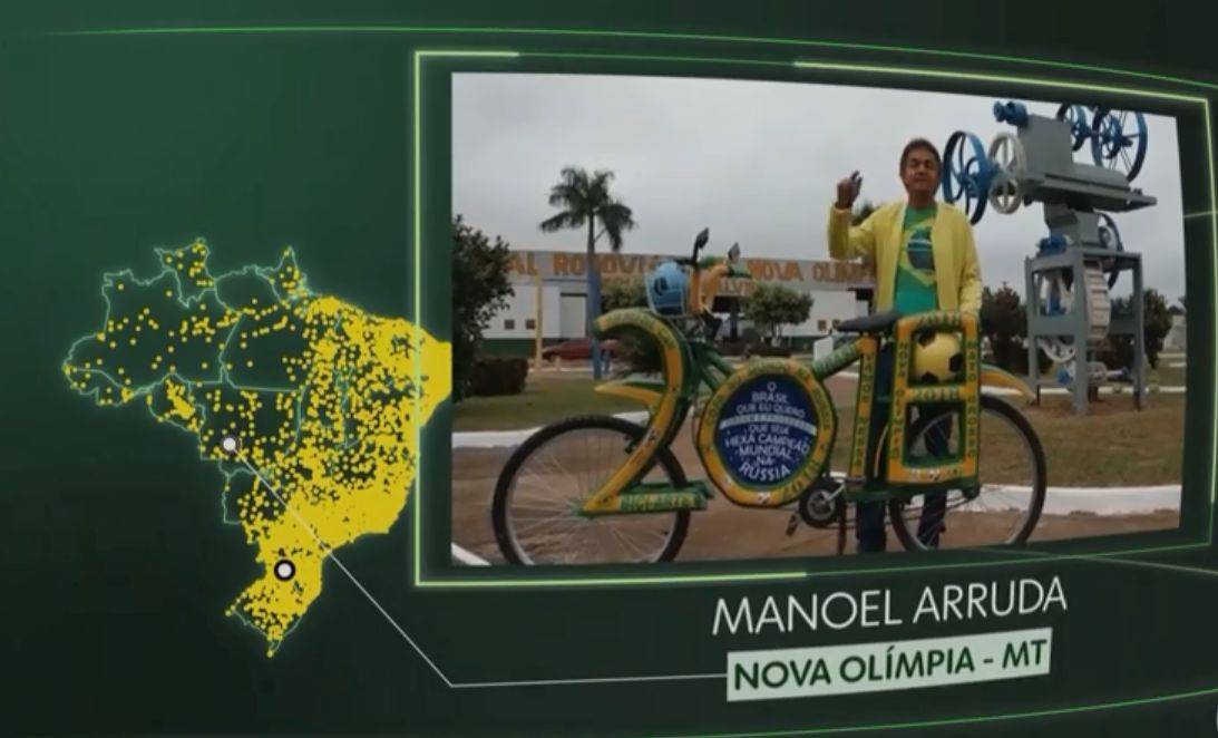 Entre um apelo e outro por questões já repetitivas pedindo o básico para a melhoria na vida dos brasileiros, surgiu o depoimento de um senhor com o nome Manoel Arruda. Com uma bicicleta decorada para a Copa do Mundo 2018, ele soltou um complemento incomum para o ‘Brasil que eu quero…”