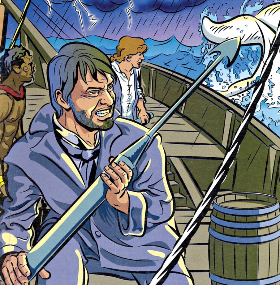 A história de Moby Dick é a de um capitão, um grande caçador de baleias, que sai numa viagem longuíssima, tremendamendente arriscada, para matar a baleia que decepou sua perna.