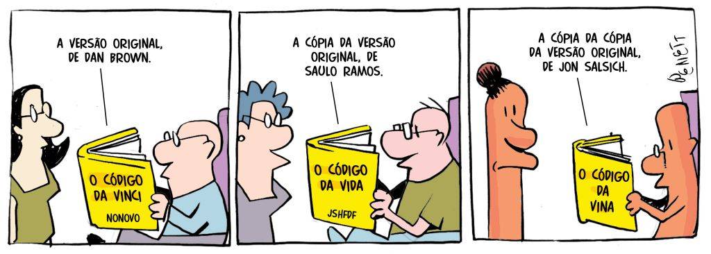 1- Examine a tirinha do Benett( GP, 1º / 11 /2008 ) e descreva a seqüência de cada quadrinho; limite-se a 7 linhas.