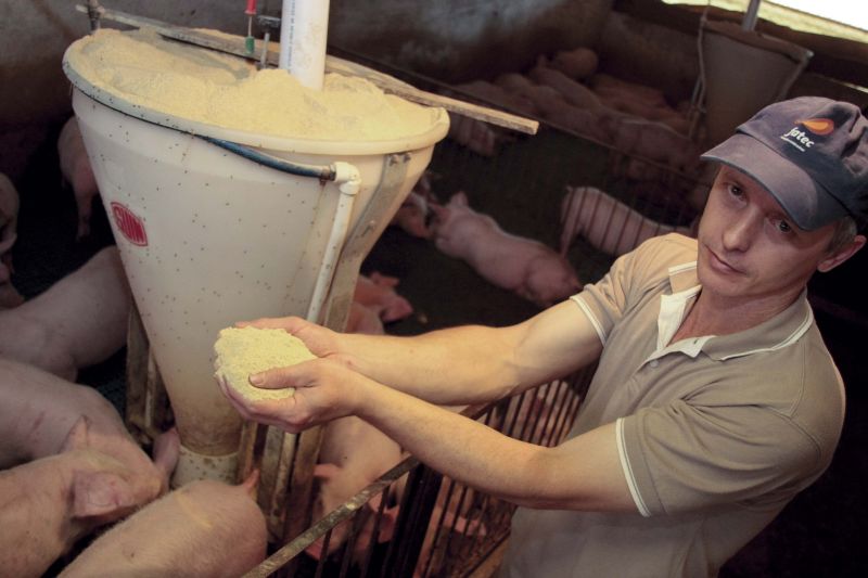 Diante do agravamento do quadro da suinocultura no Paraná, muitos produtores estão mudando de ramo. O criador Ivacir Cerutti, de Toledo, é um dos poucos que ainda aposta na criação de porcos, apesar de o lucro estar praticamente empatado com os custos. Ele diz estar entregando o quilo do suíno vivo a R$ 1,60, abaixo da média, de R$ 1,80 por quilo, apontada para a região. Ele vende 200 animais por semana para um comprador independente e ainda não largou a atividade porque consegue reduzir seus custos processando o farelo de soja e produzindo ração na própria granja. "Prefiro vender à vista a perder de vista", brinca Cerutti. "O que a gente precisa hoje é de preço mínimo", sugere.