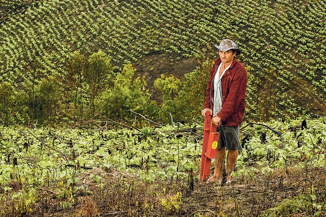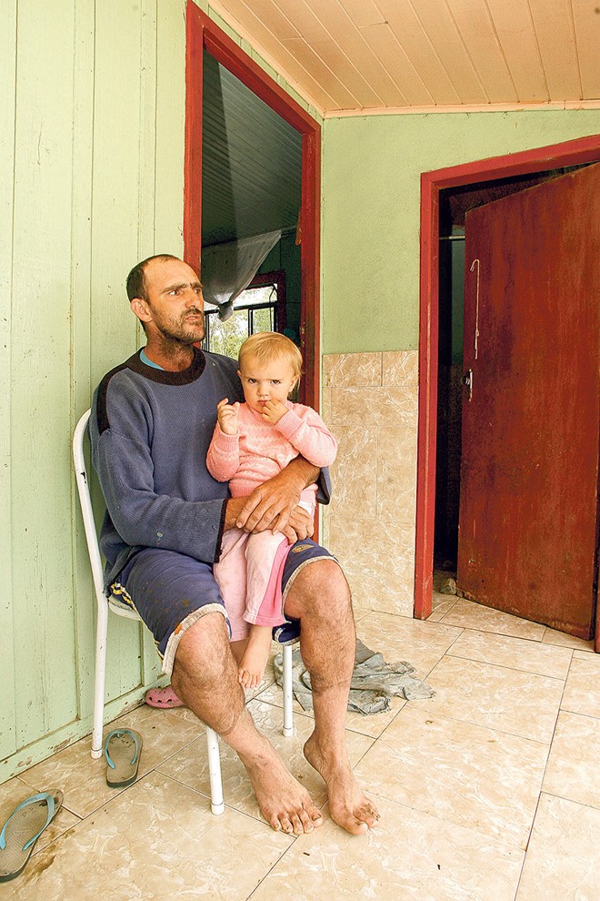 José Bodnar, 46 anos, planta feijão preto há décadas numa área de 12 hectares que fica na região de serra próxima à foz do Rio Ivaí. O trator só é usado numa porção de três hectares. No restante da área, que tem topografia acidentada, ele usa matraca. A queima do mato, que prepara a terra para o plantio, deixa restos de tocos na pirambeira. “É um tombo por dia”, resume Bodnar.