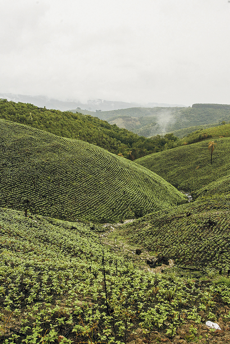 A terra dobrada, que atrai os pequenos produtores pelo preço mais baixo que o da área plana, impede a entrada de maquinário sofisticado. Onde a tecnologia não chega, a velha matraca – usada para semear o grão – é a aliada dos agricultores, que também fazem a colheita manualmente.