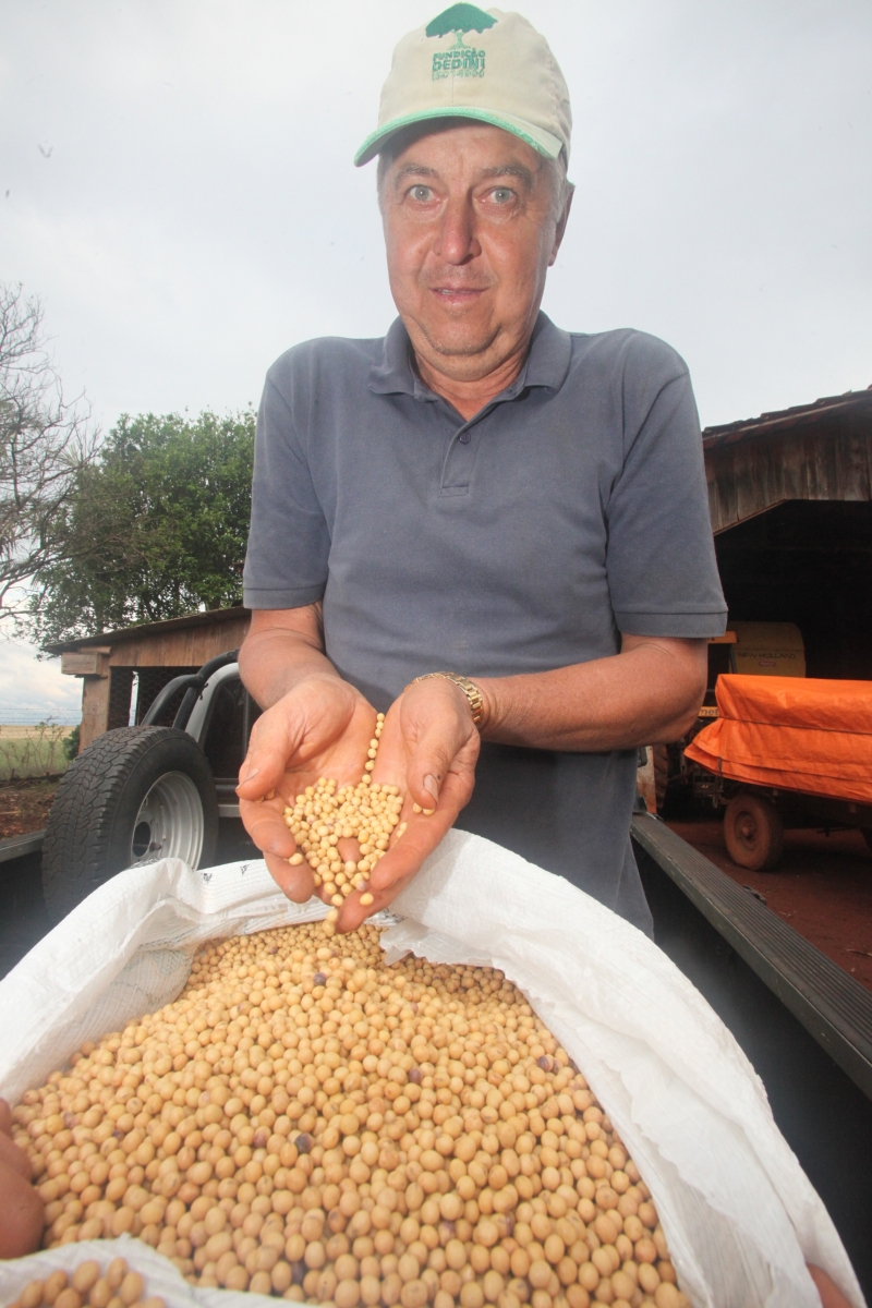 Zmuda conta que cultiva soja não-transgênica há mais de 25 anos e que por isso já conhece bem as variedades que produzem melhor. "A transgênica tem custo maior, mas mesmo assim compensa plantar convencional", diz. O desembolso por hectare, relata, é de, respectivamente, 15,28 sacas e 16,5 sacas por hectare.