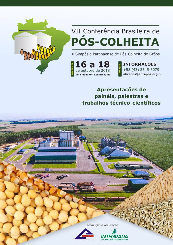 Londrina sediará entre os dias 16 e 18 de outubro a VII Conferência Brasileira de Pós-colheita (VIICBP2018) e o X Simpósio Paranaense de Pós-Colheita de Grãos. O evento, que neste ano será realizado pela Cooperativa Integrada, em parceria com a Associação Brasileira de Pós-Colheita (Abrapós), será o maior evento do segmento no Brasil.
