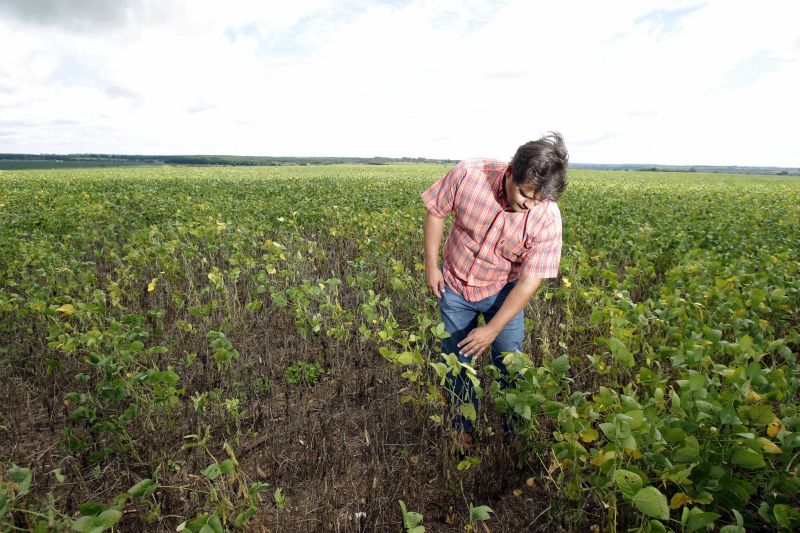 Mesmo sem grande avanço na colheita, é possível encontrar casos concretos de lavouras com rendimento abaixo do esperado. O agricultor e presidente do Sindicato Rural de Uberlândia, Thiago Soares Fonseca, dividiu os mil hectares cultivados com soja em três talhões iguais com ciclos precoce, semi-precoce e tardio. As áreas mais adiantadas deram 67 sacas por hectare em 2013/14, mas agora estão com 47 sc/ha, diz.