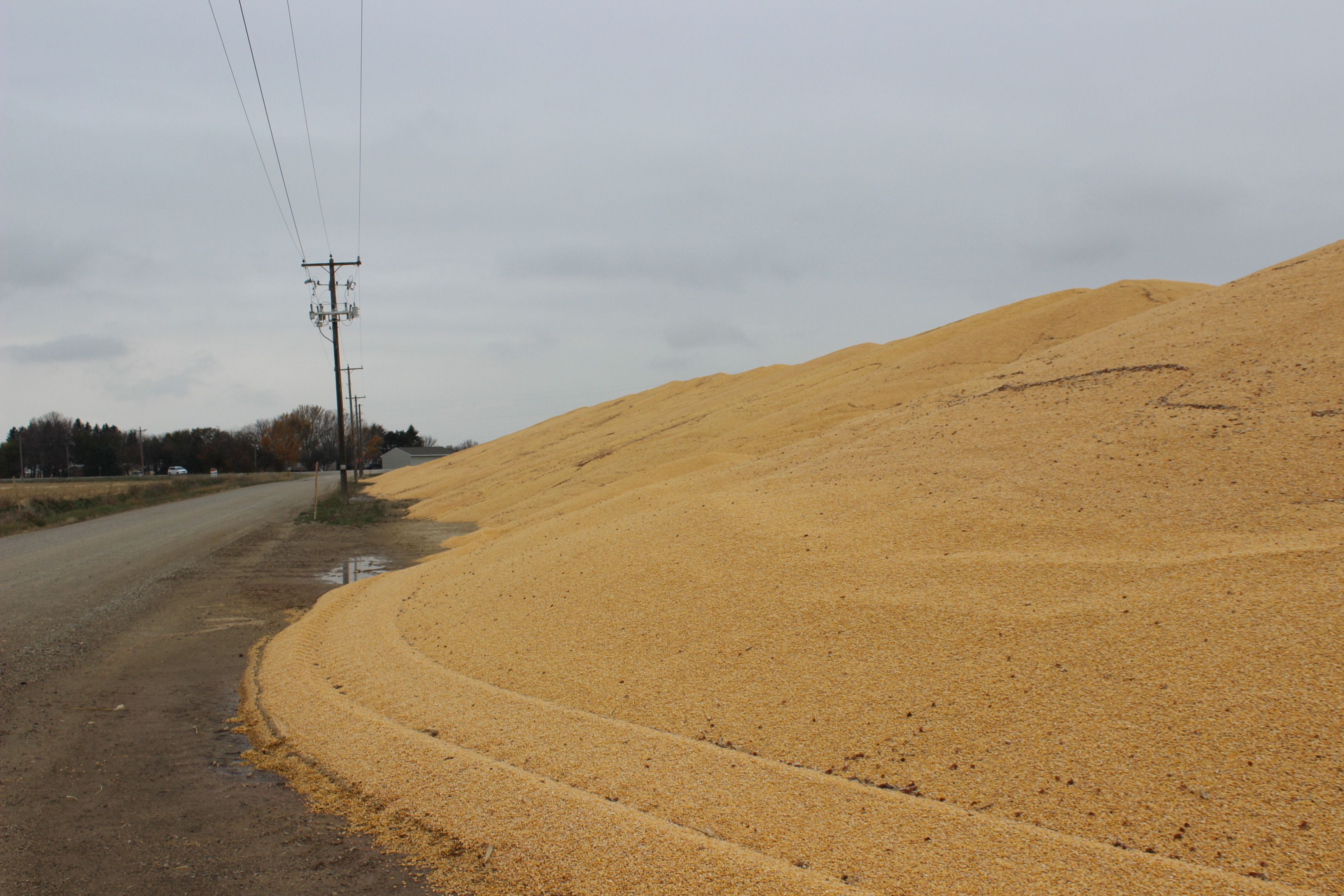 Montanha de milho na beira da estrada nos Estados Unidos denuncia a falta de espaço nos armazéns. (Foto: Giovani Ferreira/Gazeta do Povo)