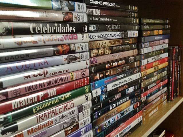 Minha modesta coleção segue num ritmo de crescimento lento, na faixa dos 300 e tantos filmes, espalhados em Curitiba e Itapema. Meus xodós são os filmes dos meus diretores preferidos: tenho hoje 20 DVDs do Woody Allen, 21 do Scorsese e 17 do Hitchcock. Estão ali, no “quarto da bagunça”, por onde passo de vez em quando apenas para namorá-los um pouquinho. E, sempre que possível, escolho algum para passar a noite. Afinal, o amor continua lá, menos intenso, mas ainda fiel. Agora, é aguardar pelas bodas de prata.