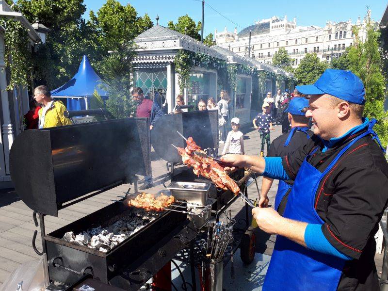 Entre os quitutes preferidos dos turistas está o churrasco à moda russa. No carvão em brasa, com a churrasqueira ao ar livre, os russos preparam espetinhos de carne. Uma espécie de churrasquinho de “gatov”, versão do popular acepipe das cidades brasileiras? Não, nenhuma semelhança.
