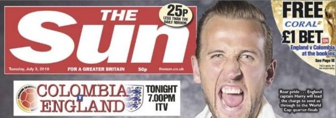 O tabloide inglês The Sun causou muita polêmica na véspera da partida entre Inglaterra e Colômbia, nesta terça-feira (3), às 15 horas, pelas oitavas de final da Copa do Mundo 2018.