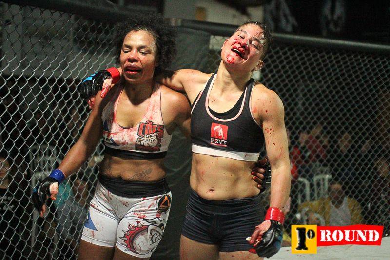 A carioca de 28 anos teve trabalho diante da Gladiadora, que tem 40 anos de idade e cinco anos de carreira. Ensanguentadas, as lutadoras se abraçaram após o fim do combate.