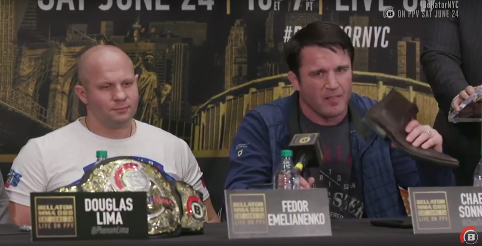 Chael Sonnen comparou Wanderlei Silva a um sapato na coletiva de imprensa do Bellator 180, nesta terça-feira (28), em Nova York.