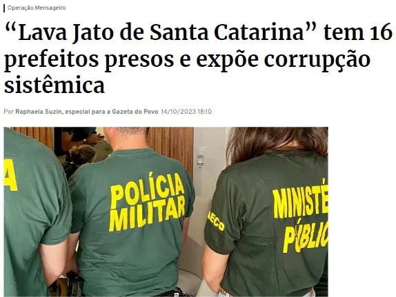 A Operação Mensageiro apurou um esquema de propinas e fraudes na contratação de coleta e destinação de lixo em ao menos 20 municípios de Santa Catarina, e levou à prisão de 16 prefeitos.