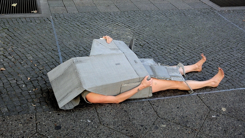 Mesmo quando a performance é realizada ao ar livre, naquilo que convencionalmente se entende pelo termo, numa cena híbrida entre teatro e coreografia comum até em sinaleiros , muita gente fica sem entender. Na apresentação de Umziehen, a brasileira radicada em Berlim Nathalie Fari movia-se dentro de uma caixa armada, inspirada no problema da identidade dos migrantes. Muita gente assistiu em volta sem dar um piu, mas alguns passavam correndo pela ciclovia do Parque da Represa e falavam alto sobre como aquilo era estranho. Um policial não se conformava com aquela loira enfiada debaixo de um banco de praça. "Mas ela está passando bem? É moradora de rua?"