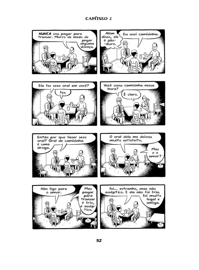 O cartunista canadense Chester Brown percebeu, ao terminar seu último namoro, que estava cansado de relações monogâmicas possessivas que, na opinião dele, só levavam a brigas e discórdia e se descobriu surpreendentemente livre da dependência do amor romântico. O único problema era a falta de sexo. Chet, como é chamado pelos amigos, transpôs esse obstáculo da maneira mais óbvia possível: virou um cliente costumaz das prostitutas de Toronto, fazendo um cálculo preciso de quanto gastaria por ano se mantivesse um contato a cada três semanas.