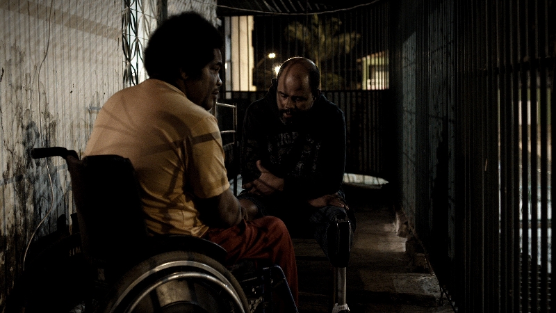 Adirley Queirós também filma a periferia a de Brasília. Ele já ganhou a Mostra Aurora com A Cidade Nos Pertence, há um par de anos. Na época, o júri da crítica justificou seu prêmio falando na empatia dos personagens e na maneira criativa como o autor misturava passado e presente. A mesma justificativa valeria para Branco Sai, Preto Fica e, até certo ponto, para A Vizinhança do Tigre. Queirós é cineasta de Ceilândia, cidade satélite de Brasília. É onde vivem, desde o início da construção da capital federal, os excluídos. Os personagens integravam um grupo de moleques que dançava nas baladas (de sábado à noite?). Um levou bala da polícia e ficou paralítico. O outro perdeu a perna.