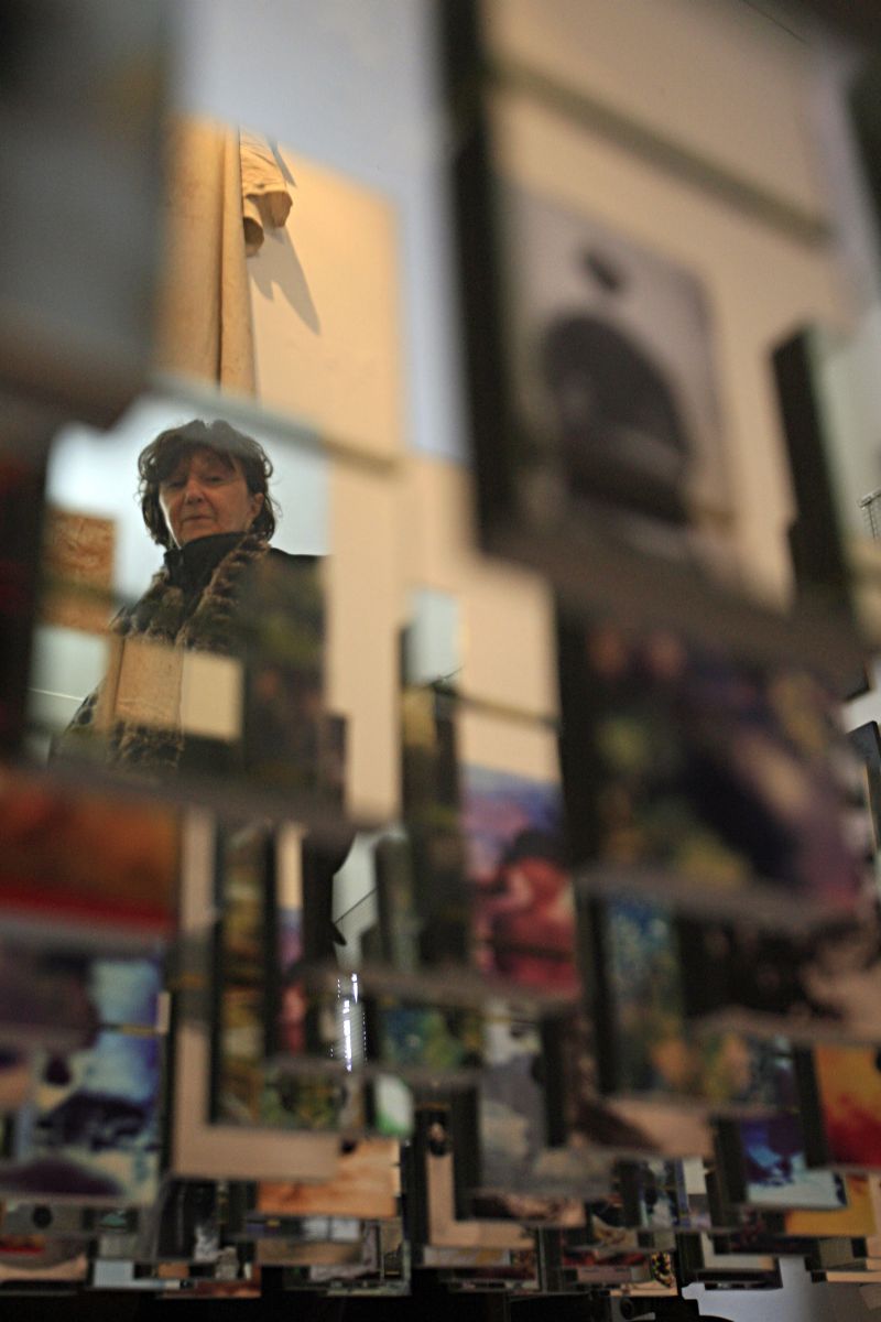 Andando pelo seu ateliê, no bairro do Batel, a artista se pergunta como vai guardar tanto material que virá de uma exposição na Casa da Memória, que acabara de ser desmontada. Sente saudades do seu espaço antigo, um galpão na Rua José Loureiro, do qual ela teve de se desfazer. "Lá era um espaço muito louco, em um estacionamento. Tinha uma casa velha, um jardim. O lugar me permitia sonhar. Agora esse aqui [um apartamento] é mais organizadinho... e ateliê não é assim."