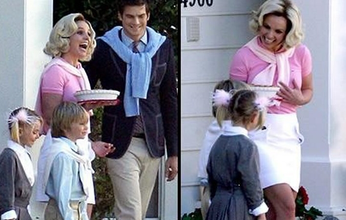 A cantora Britney Spears será uma sexy dona de casa dos anos 50 em seu novo clipe, "If u seek Amy". Vestindo uma peruca loura, blusa rosa apertada e saia branca, a cantora passou a terça-feira filmando em Pacific Palisades, Califórnia, perto de Malibu.