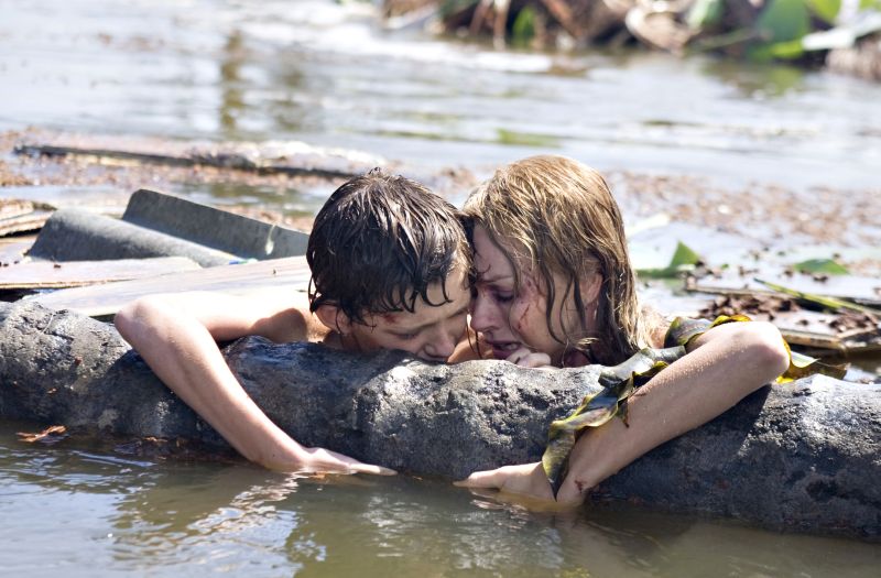 Os três filhos, Lucas (Tom Holland), Thomas (Samuel Joslin) e Simon (Oaklee Pendergast) vivem as alegrias e conflitos normais para suas idades, até o momento em que a onda gigante os impacta num efeito que parece ilustrar bem o terror inesperado da situação. Somente aves e répteis pressentem a catástrofe e fogem.