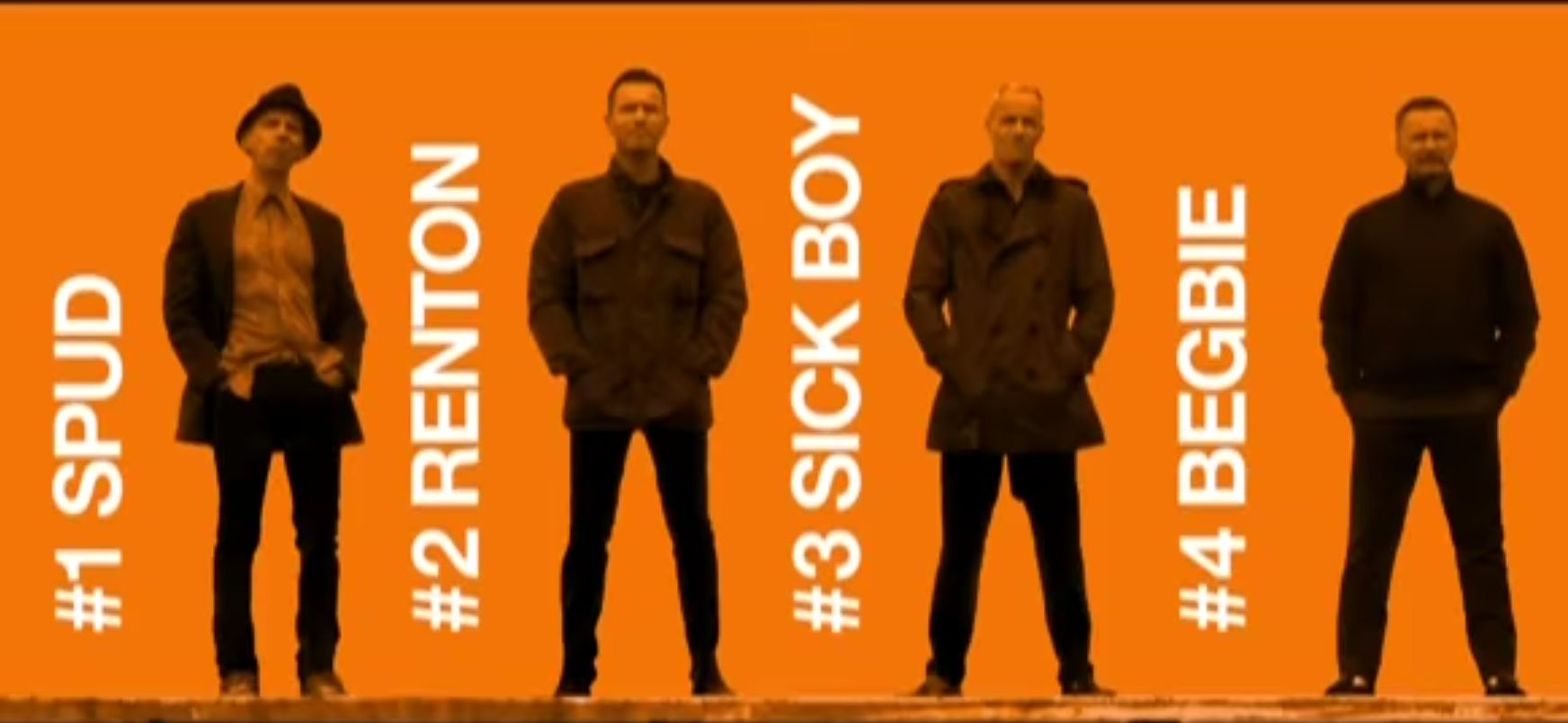 No curto vídeo ao som de “Lust For Life”, de Iggy Pop, Ewan McGregor, Ewen Bremner, Jonny Lee Miller e Robert Carlyle, que integraram o elenco original, aparecem como Renton, Spud, Sick Boy e Begbie, respectivamente, lado a lado em uma plataforma de trem.