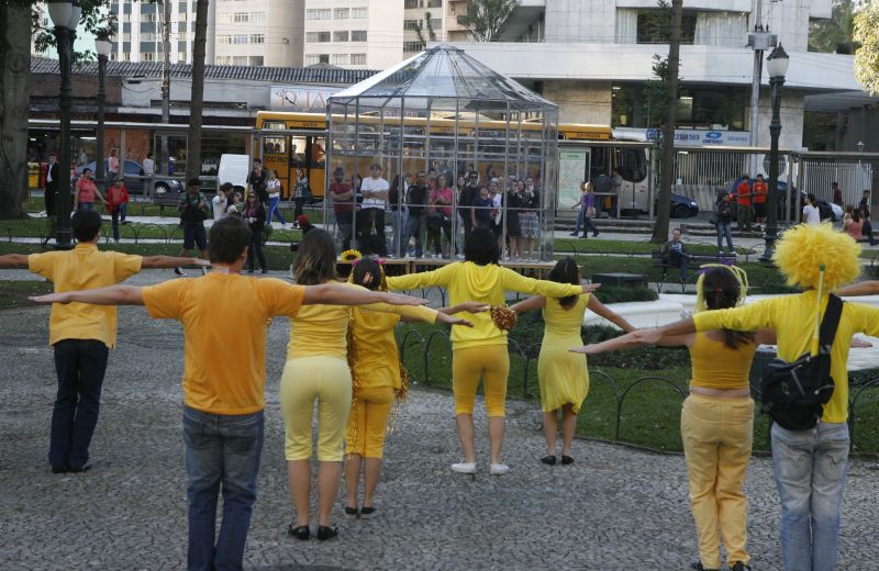 De volta às curitibanas, vale destacar três montagens que cumpriram temporadas anteriores na cidade. Em Espaço Outro, a ACruel vai à Praça Santos Andrade explorar a relação dos atores com o espaço público, enquanto os espectadores são enclausurados em um cubo de acrílico e recebem instruções que orientam seu olhar para fora.