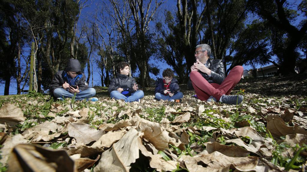 As crianças avançam na pista de caminhada do parque e os avisos combinados para manter o passeio seguro são feitos: “não pode correr”; “vocês andam sempre na minha frente”; “não pode andar na ciclovia”; “não pode ficar muito próximo ao lago” são algumas das regras. Tudo isso para que as crianças não se machuquem e mantenham os aparelhos funcionando. Rogério faz o passeio sem a ajuda de ninguém e por isso não tira os olhos da criançada nem por um minuto. Com atenção e paciência, ele leva os meninos para caçar e para recarregar as pokebolas auxiliando os garotos no jogo. “O legal é que todos brincam juntos, porque assim todos conseguem capturar os monstrinhos”, diz.