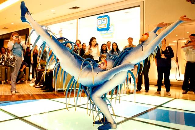 Um casal de palhaços com performances divertidas e dois personagens do ato "Slippery Surface" agitaram os corredores do ParkShopping Barigui no fim da tarde desta sexta-feira (29). O grupo do Cirque du Soleil realizou um Flah Mob no ParkShopping Barigui, em Curitiba.