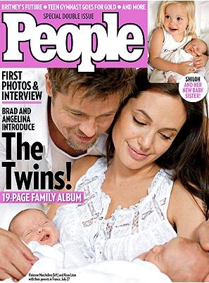 A revista People traz na capa de sua próxima edição, com os gêmeos Vivienne Marcheline e Knox Leon junto aos pais, em seu site. A revista chega às bancas na segunda-feira, com 19 páginas sobre os bebês.