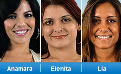 As sisters Anamara, Lia e Elenita disputam a preferência do público no paredão que elimina uma das três na terça-feira (16).