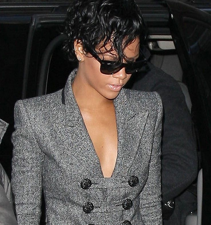 Em sua primeira aparição pública desde o caso de agressão de Chris Brown e Rihanna, a cantora surgiu em Nova York muito séria, usando um terno cinza e óculos escuros, segundo noticiou o site "E! Online".