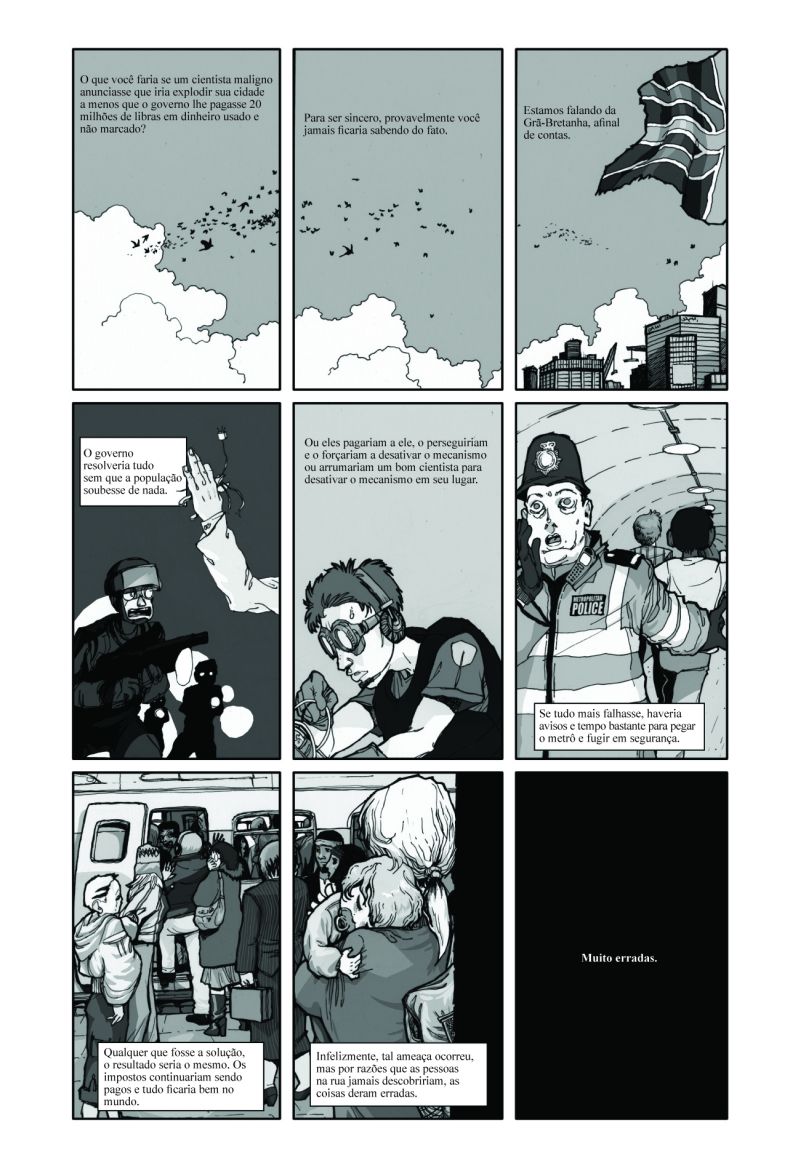 Um argumento simples e, de partida, pouco original uma ameaça de bomba capaz de dizimar a população de Londres , ganha, pela imaginação de West, solução acachapante. O desenvolvimento da trama não poderia ser mais claro e direto, mas somente aos poucos, quadro a quadro, o leitor se dá conta da gravidade das consequências pessoais trazidas pela ação do protagonista.