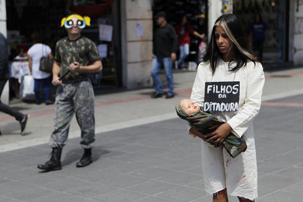 “Esse pedido de volta de intervenção militar é a influência disso tudo”, comentou a diretora do ato, Lúcia Helena Martins, do coletivo Salmonela Urbana Cia Performática. “Quem passar por aqui e parar um pouco e ver vai refletir sobre o que foi a ditadura. Pelo que a gente vê, parece que as pessoas não sabem o que realmente ela foi”, complementa.