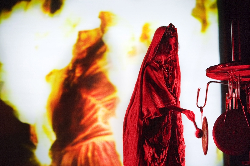 Passando de uma personagem à outra durante toda a peça, Gabriela usa técnicas vocais estendidas, toca instrumentos étnicos e muda de figurino em cena. "Isso flui de uma maneira muito impactante", conta Jocy, que trabalha com a soprano há mais de 20 anos. "Ela é uma especialista, tanto na minha música quanto na música contemporânea. Sempre brinco que, se Maria Callas (1923-1977) ressuscitasse, não seria capaz de cantar o que quero", elogia a compositora.