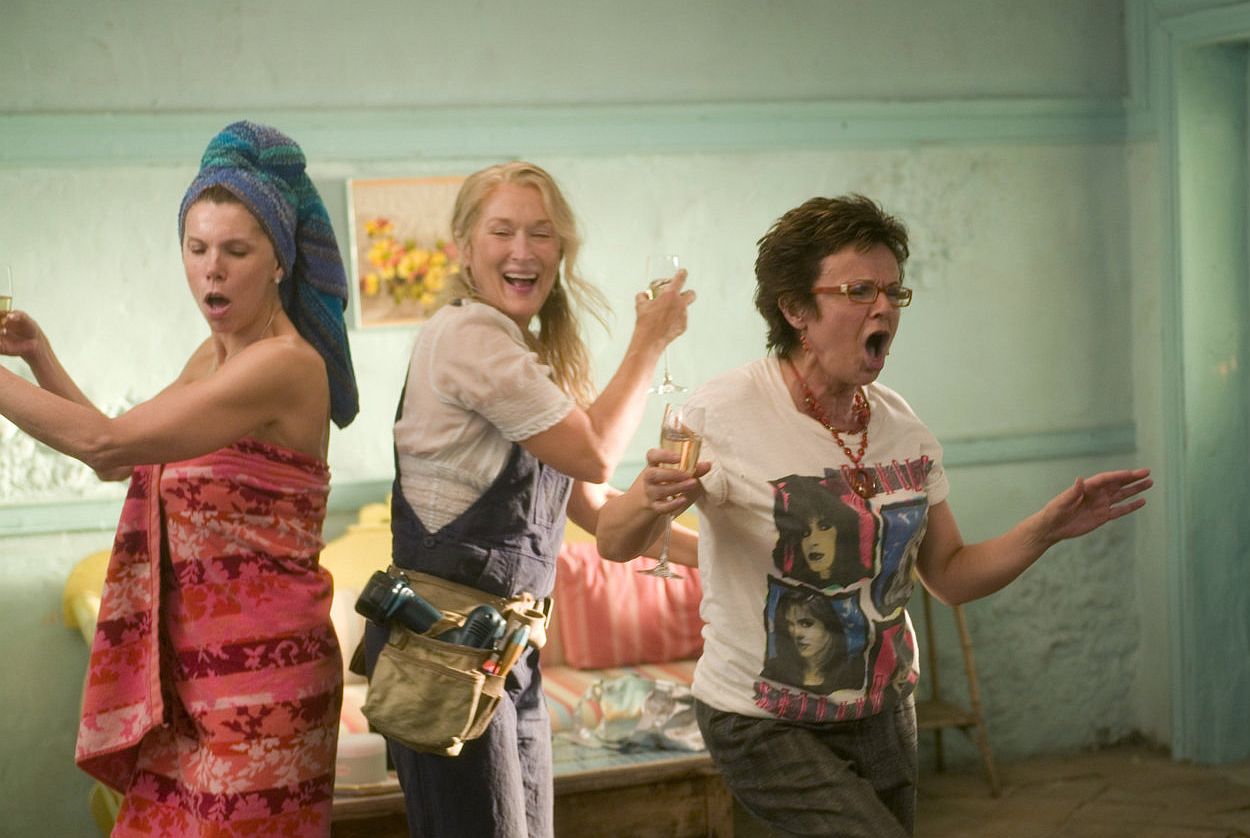 As músicas não se encaixam na ação e os personagens parecem não entender o que estão cantando, mas sorriem e repetem seus versos afinadamente. O problema aqui não é tentar disfarçar a cafonice das músicas com um cenário paradisíaco ou uma grande atriz (que parece estar apenas brincando), o que atrapalha é como nada parece estar no lugar certo, desde os números musicais até as amigas de Donna, vividas por Julie Walters e Christine Baranski.