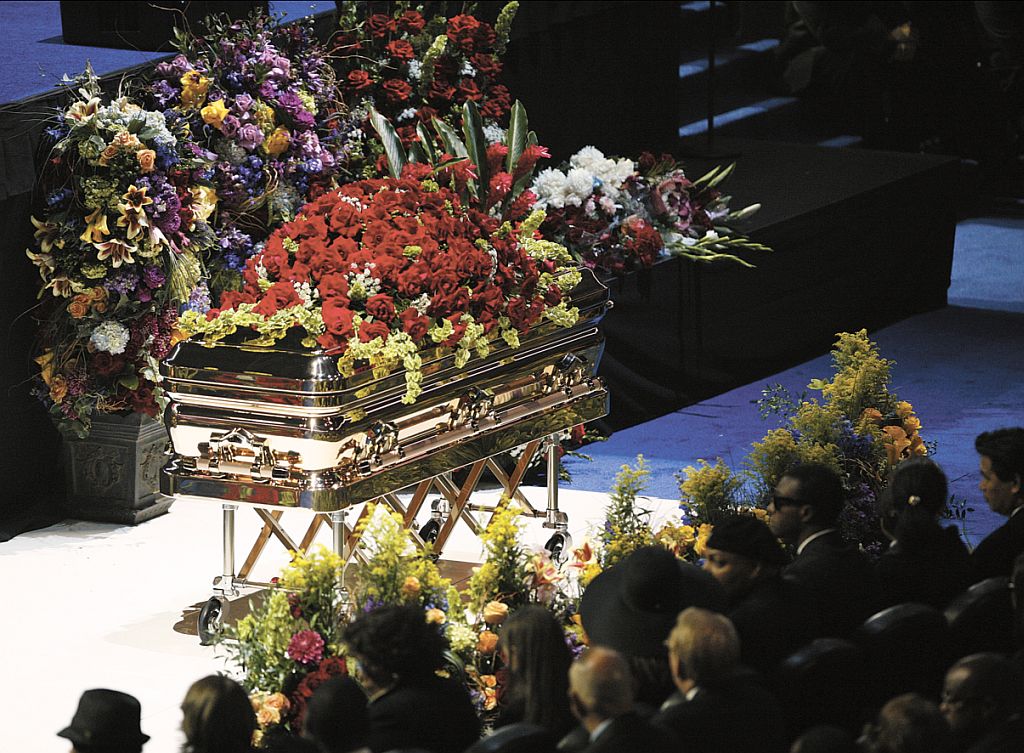 Após uma cerimônia privada, realizada pela manhã, no cemitério Forest Lawn Memorial Park, em Hollywood (subúrbio de Los Angeles), com a presença de apenas familiares e amigos próximos de Michael Jackson, o corpo do cantor, dentro de um caixão banhado a ouro, foi transportado até o Staples Center, num trajeto de cerca de 20 quilômetros.