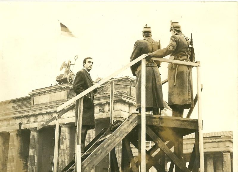 Depois de uma segunda-feira protocolar em Bonn, voei no começo da noite para Berlim. Aterrissei no aeroporto de Tempelhof vendo espiões por toda parte. A cidade me apavorava e ao mesmo tempo me fascinava. Imaginem uma megalópole partida ao meio: o lado ocidental, capitalista; o lado oriental, comunista. E essa metade capitalista estava incomodamente encravada em território comunista. Assim era a Berlim que eu visitava pela primeira vez. Para tornar a divisão ainda mais concreta, os alemães orientais ergueram o muro. Quatro meses depois do início da sua construção, fui levado por meus gentis anfitriões para posar diante do Portão de Brandemburgo. A série de fotos feita naquela terça-feira gélida, 12 de dezembro, foi distribuída para órgãos de imprensa de todo o Brasil. Uma delas mostrava o jornalista de 24 anos, representante da Gazeta do Povo, ao lado do sinistro cartaz: "ACHTUNG! Sie verlassen jetzt WEST-BERLIN" ("ATENÇÃO! Você está deixando agora BERLIM OCIDENTAL").