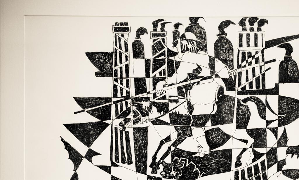 Paulista radicado na capital paranaense há mais de 60 anos, Mendes traz para sua nova mostra 35 desenhos inéditos, que provocam em forma e conteúdo ao evocar o contraste entre o bem e o mal, o preto e o branco, o cotidiano e o que parece estranho.