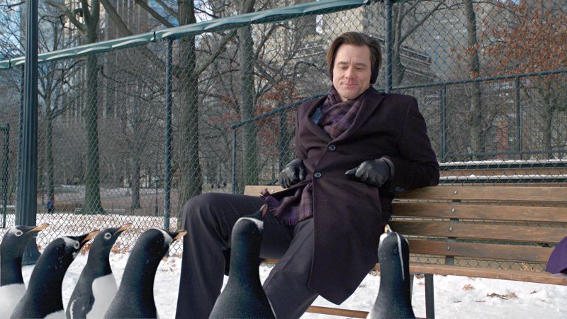 No filme Os Pinguins do Papai, seu estilo de humor pende mais para a sutileza do que para o simples pastelão. O antigo Jim Carrey ainda está lá, com sua risada inimitável. Mas um novo ator que mostra algumas rugas de seus 48 anos também. "Alguma coisa eu tinha que amadurecer aqui dentro", contou Jim, que recentemente ganhou seu primeiro neto.